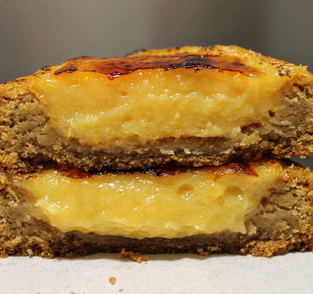Vanilla cookie, topped with our homemade vanilla custard and caramelized sugar.