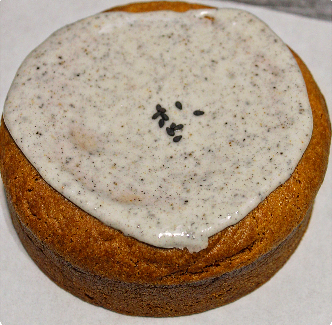 Made with our classic butter cookie dough, stuffed with our homemade fudgey black sesame filling, then topped with black sesame glaze.